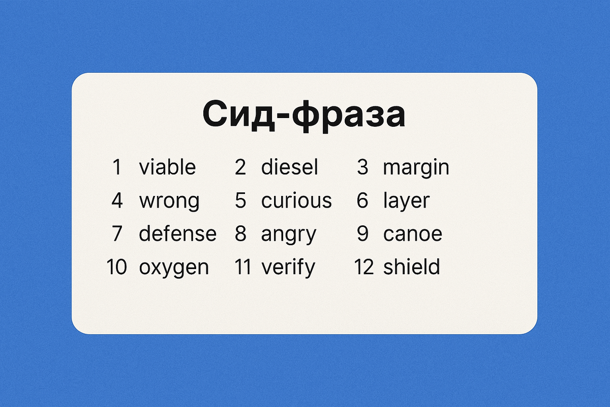 Всё просто: Когда вы создаёте кошелёк, он генерирует уникальный ключ, а вместе с ним — сид-фразу (она же seed-фраза). Это набор из 12 или 24 случайных слов — ваш главный и единственный пароль.